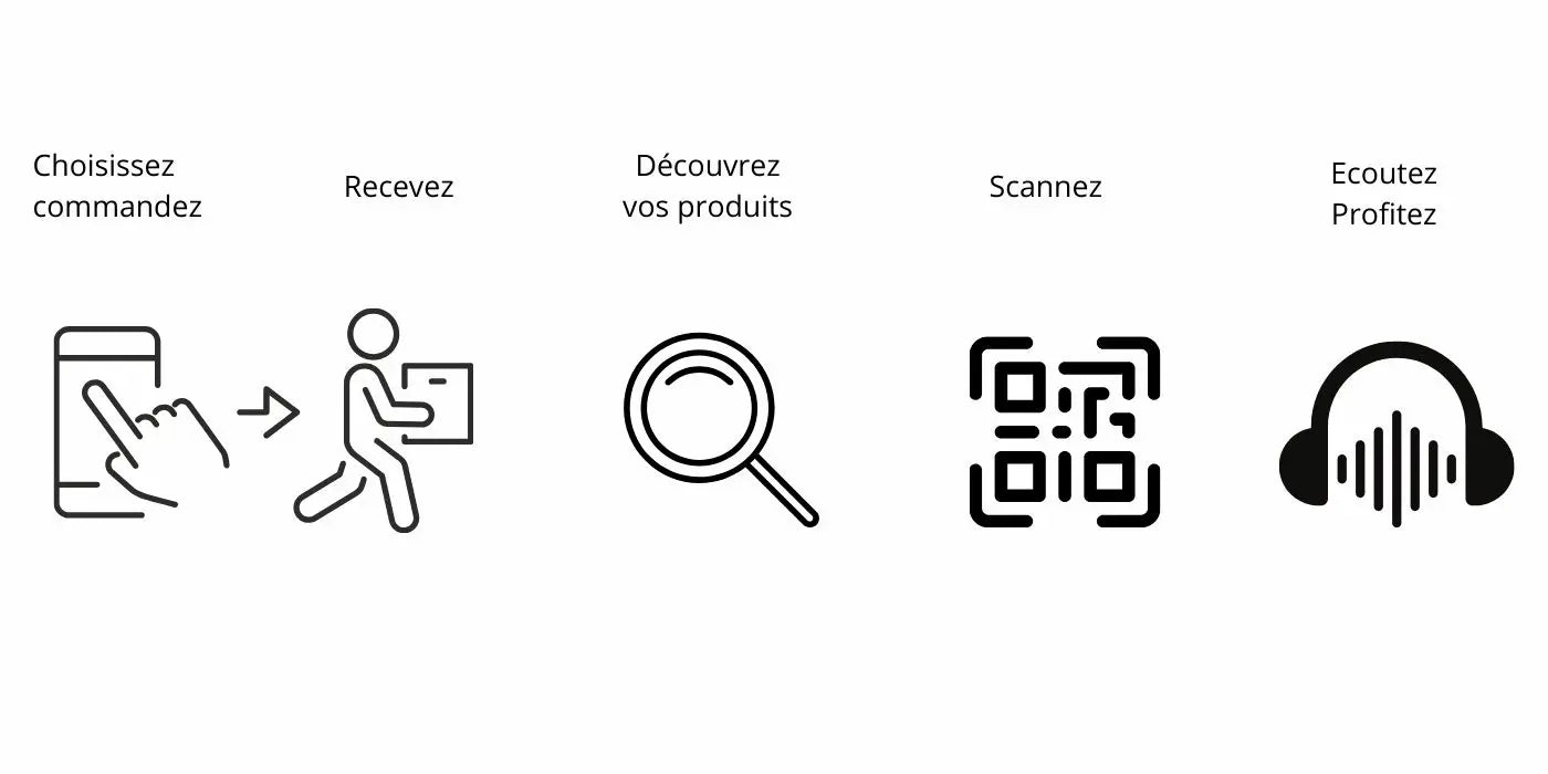 Dans le livret qui accompagne la box, vous trouverez les liens vers les audios.